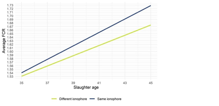 예를 들어 Monimax®(narasin + nicarbazin)으로 시작해 Sacox®(salinomycin)으로 전환하는 혼합 셔틀 프로그램은, 같은 아이노포어를 계속 사용하는 방식보다