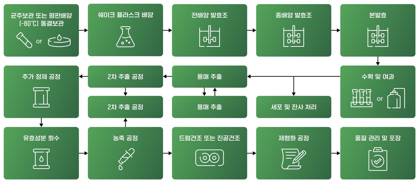 발효액을 직접 생산 및 보유할 수 있고, 700m³ 이상의 화학 합성 생산 능력도 갖췄습니다.