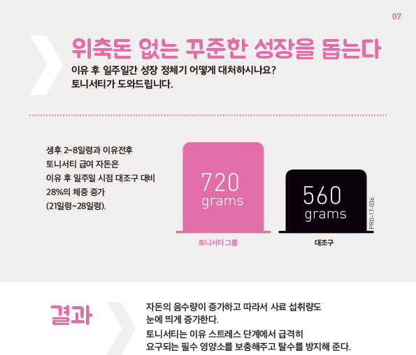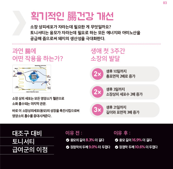 소장 상피세포(융모) 발달을 촉진 (대용유가 아님)